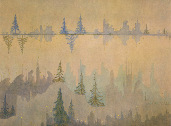 Чюрленис не часто изображал людей, больше — пейзажи, но пейзажи особые, к ним надо внимательно присмотреться.